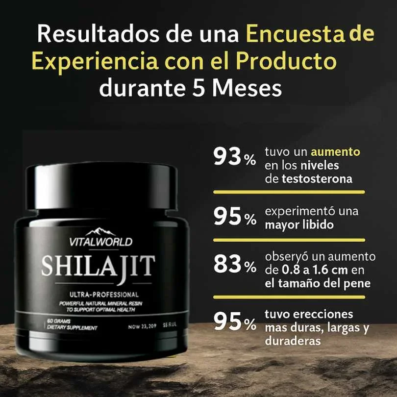 El Shilajit ayuda a mejorar la circulación sanguínea, aumentar la producción de testosterona y fortalecer el sistema inmunológico. Esto contribuye a mejorar la energía, la resistencia y la salud sexual, lo que lo convierte en un excelente aliado para quienes buscan mejorar su rendimiento físico y sexual de manera natural.