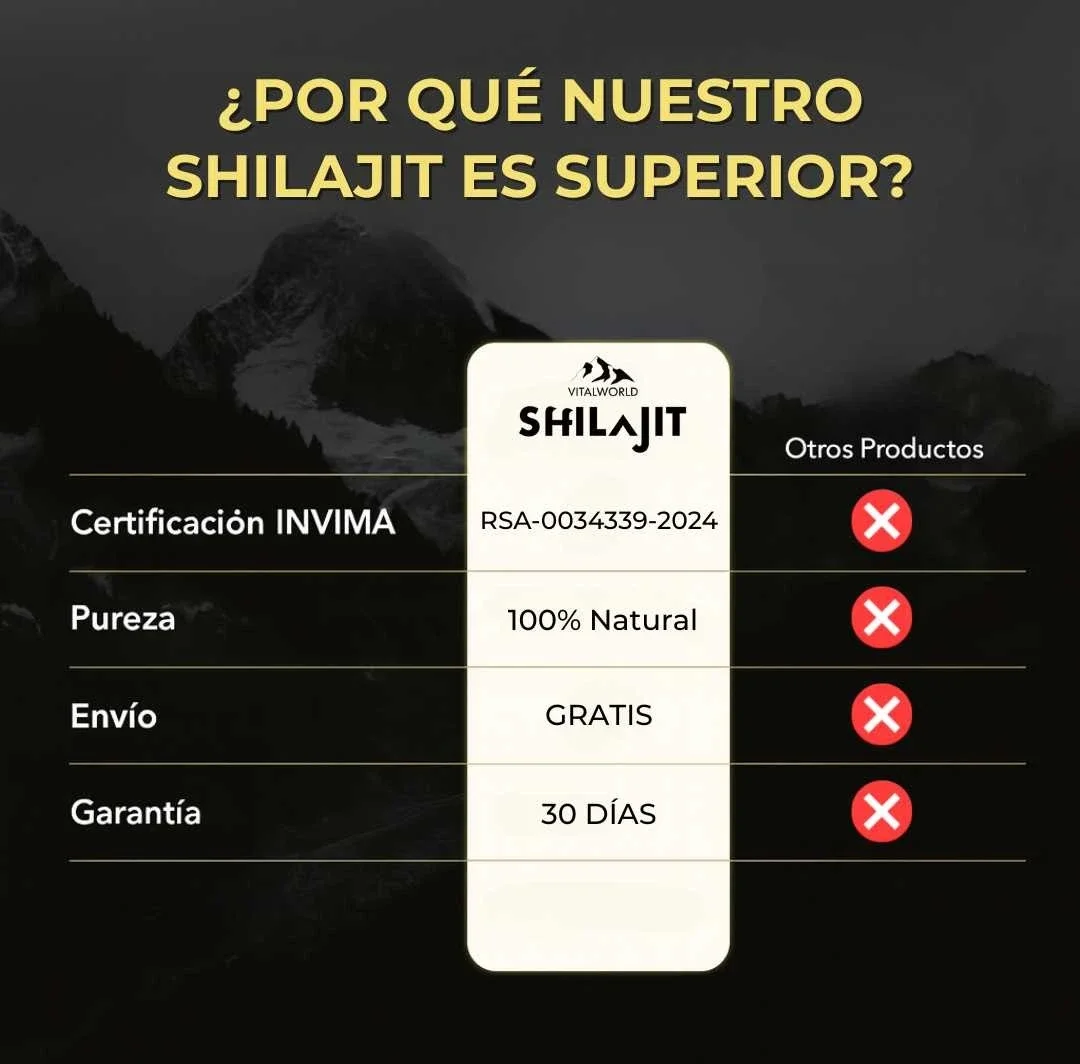 No arriesgues tu salud con imitaciones. Nuestro Shilajit Premium cuenta con Registro INVIMA, asegurando pureza y confianza en cada dosis.